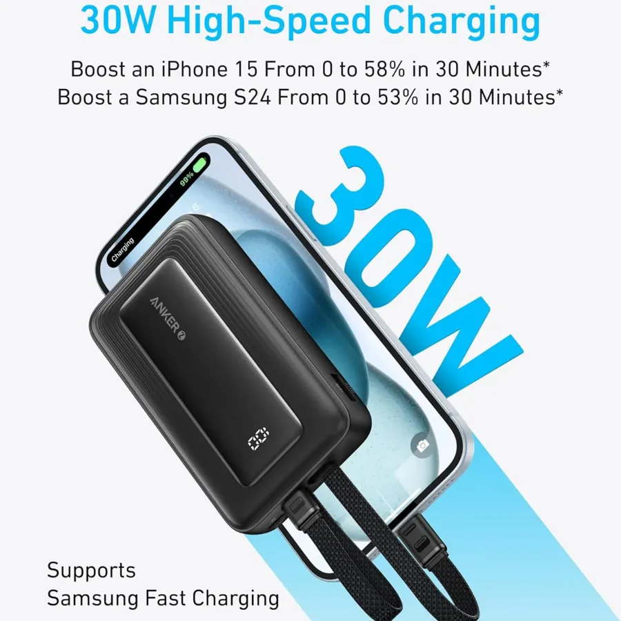 Ce que vous obtenez : Anker Zolo Power Bank (10K, câble USB-C et Lightning intégré), garantie de 1 mois