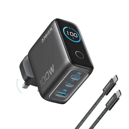 ✔️ Ce que vous obtenez : Chargeur Anker (100 W, 3 ports, écran intelligent), câble USB-C vers USB-C de 1,5 m
